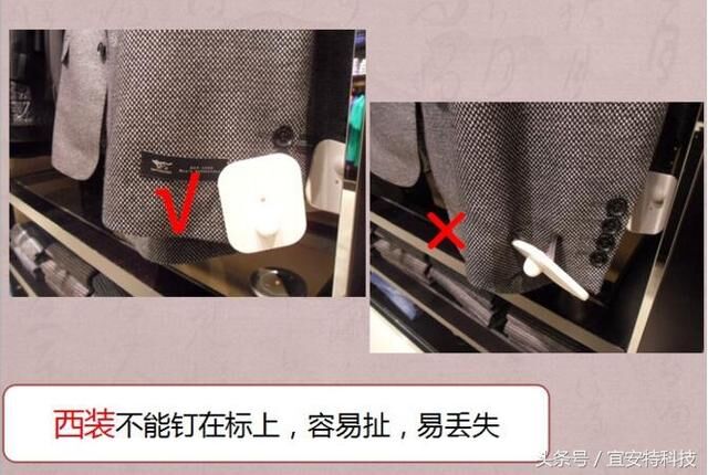 西裝不能釘在標(biāo)上,容易扯,易丟失