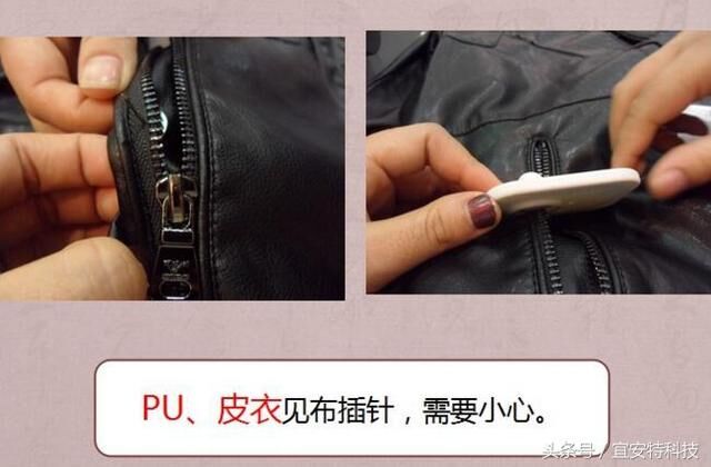 PU、皮衣見布插針,需要小心。