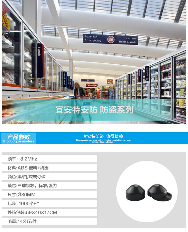 采購:防盜標簽中心圓 RF服裝防盜扣陶30