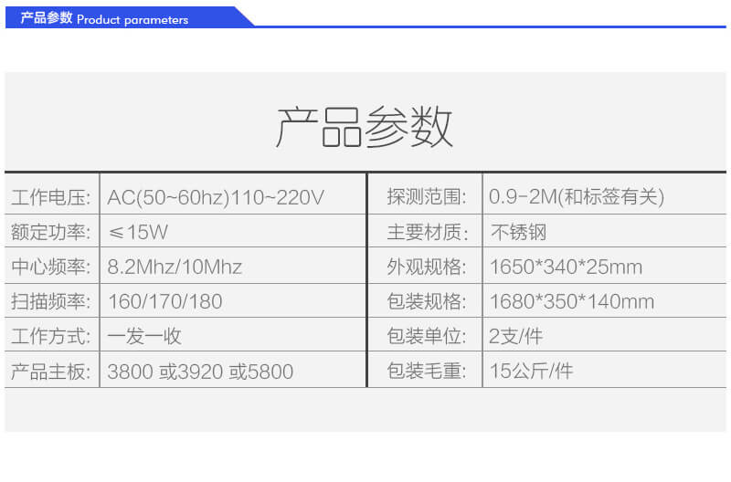 產(chǎn)品名稱:不銹鋼二桿射頻防盜天線